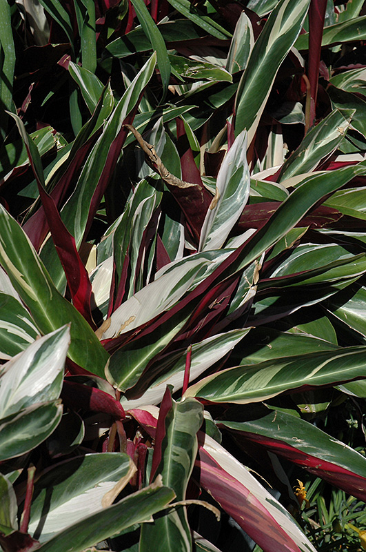 Tricolor Stromanthe's attractive large narrow leaves remain green in color with showy creamy white variegation and tinges of dark red throughout the year on a plant with an upright spreading habit of growth.