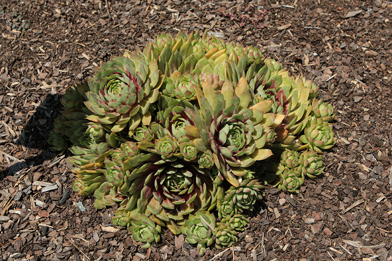 Chick Charms® GIANTS Gold Mine™ Hens And Chicks will grow to be only 5 inches tall at maturity extending to 8 inches tall with the flowers, with a spread of 12 inches. When grown in masses or used as a bedding plant, individual plants should be spaced approximately 10 inches apart. Its foliage tends to remain low and dense right to the ground. It grows at a medium rate, and under ideal conditions can be expected to live for approximately 20 years. As an evegreen perennial, this plant will typically keep its form and foliage year-round.